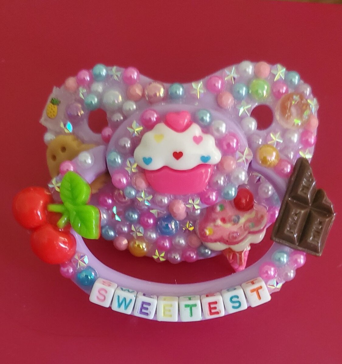If you don't see one that you absolutely must have, you can contact us to collaborate on a truly unique, one of a kind, original paci to match your vibe, to perfectly match your favorite outfit, or as a great gift for the cuties in your life!